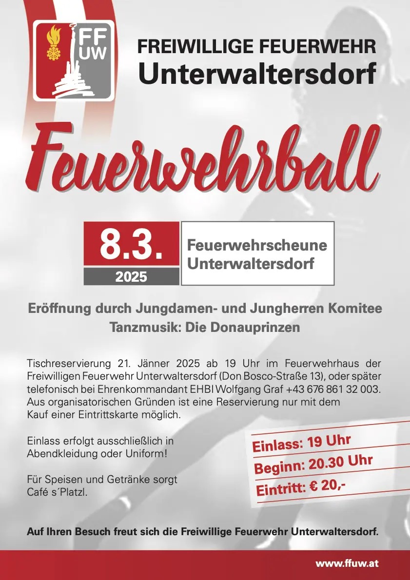 Tischreservierung ab 21. Jänner 2026 ab 19 Uhr im Feuerwehrhaus der Freiwilligen Feuerwehr Unterwaltersdorf (Don Bosco-Straße 13), oder später telefonisch …